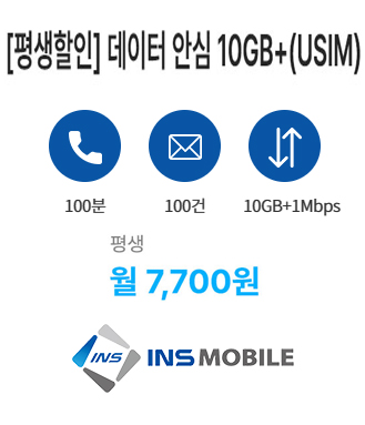 오늘 소개드릴 요금제는 평생 할인 받는 인스모바일의 데이터 안심 10GB+(USIM)입니다.